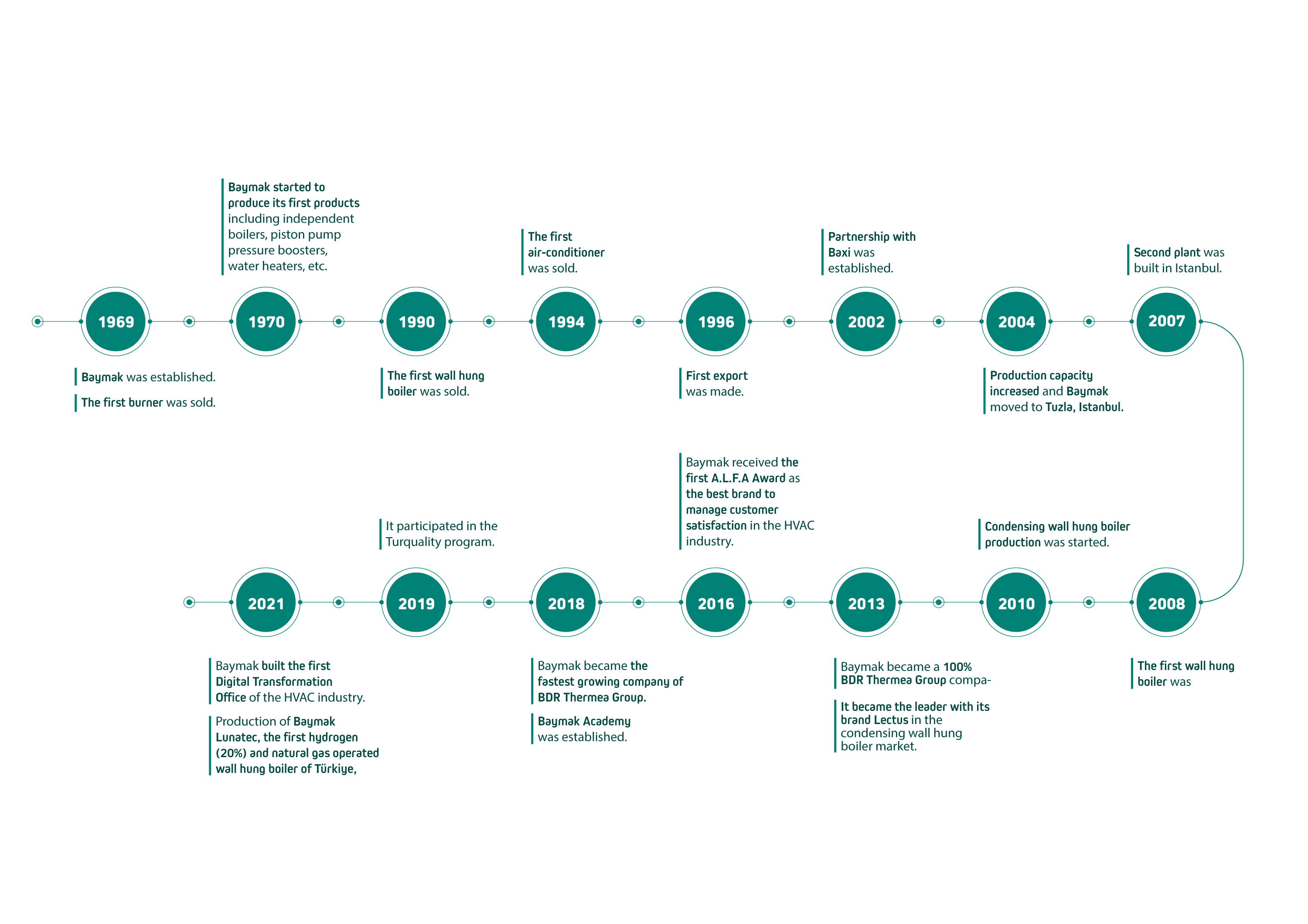 Baymak has more than 50 years of experience in the HVAC market and has 2 manufacturing plants in Tepeören, with a total area exceeding 60,000 m2. As one of the leading manufacturers of Turkey, who always focuses on producing goods with advanced technology, Baymak has near to 1,000 dealers across the country, in addition to more than 2,100 sales points and over 1,500 service technicians. Baymak has currently more than 600 employees, and has become a 100% BDR Thermea Group company in 2013.