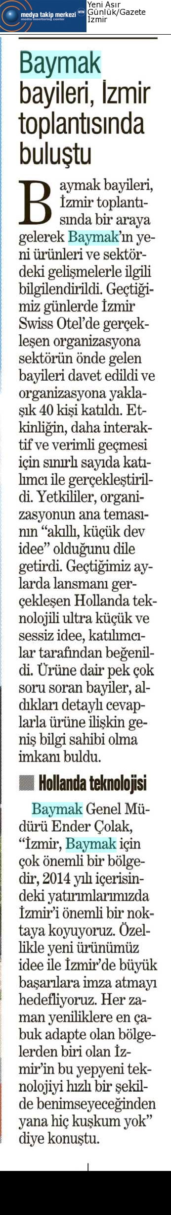 BAYMAK BAYİLERİ, İZMİR TOPLANTISINDA BULUŞTU 21.12.2013 Yeni Asır