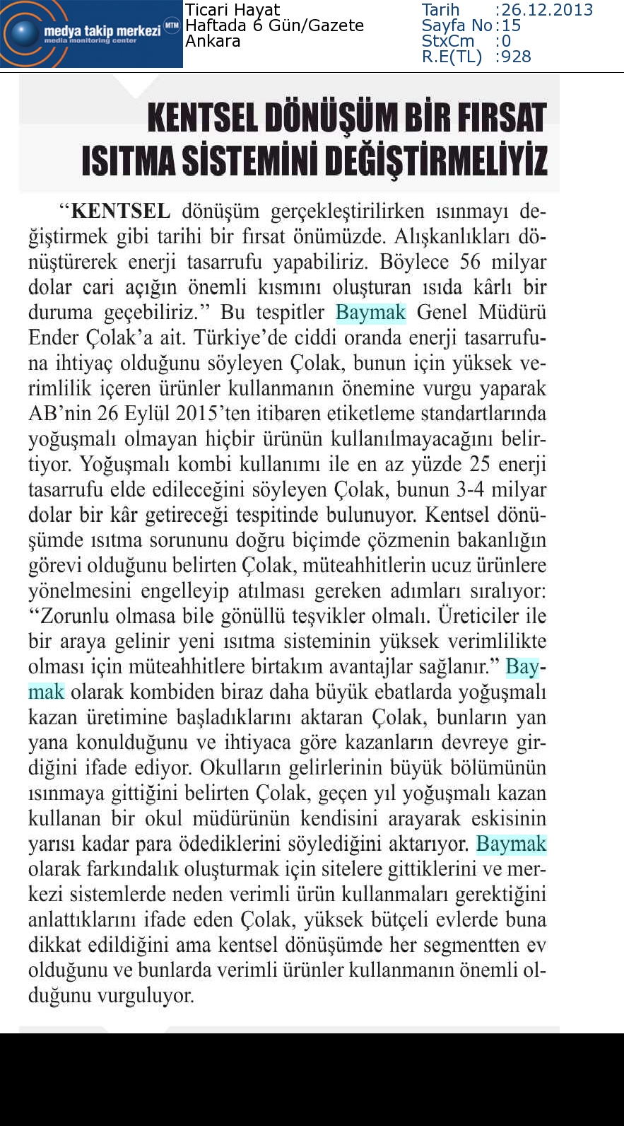 KENTSEL DÖNÜŞÜM BİR FIRSAT ISITMA SİSTEMİNİ DEĞİŞTİRMELİYİZ 26.12.2013 Ticari Hayat