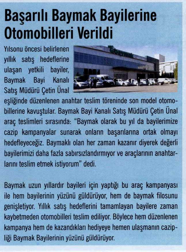 BAŞARILI BAYMAK BAYİLERİNE OTOMOBİL VERİLDİ 01.01.2014 Tesisat Dergisi