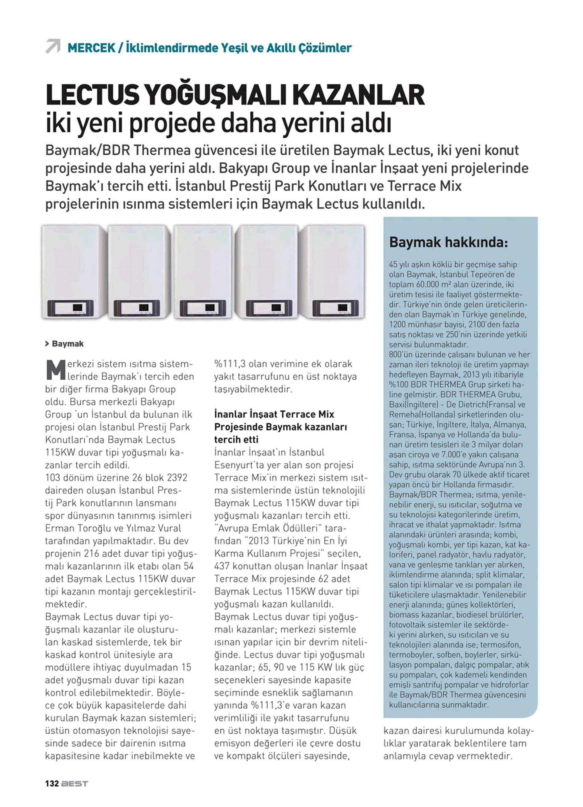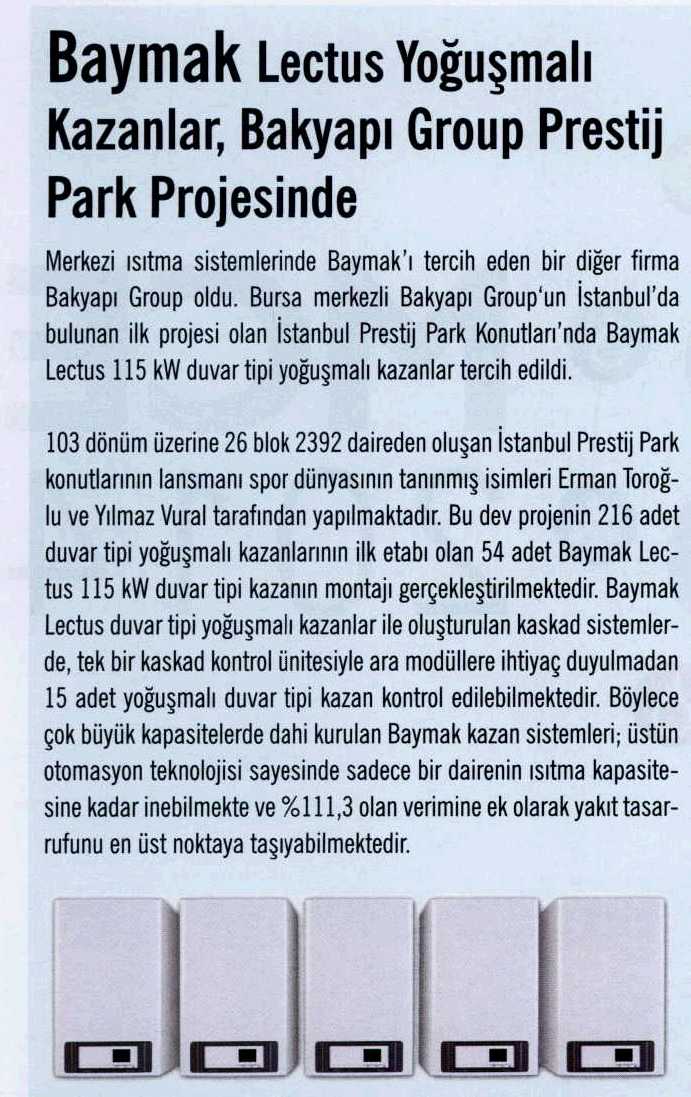 BAYMAK LECTUS YOĞUŞMALI KAZANLAR, BAKYAPI GROUP PRESTİJ PARK PROJESİNDE 01.01.2014 TESİSAT DERGİSİ