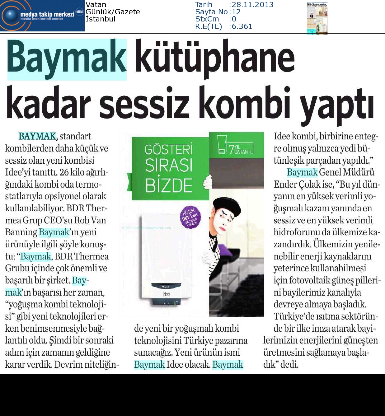 BAYMAK KÜTÜPHANE KADAR SESSİZ KOMBİ YAPTI BİZDE 28.11.2013 Vatan