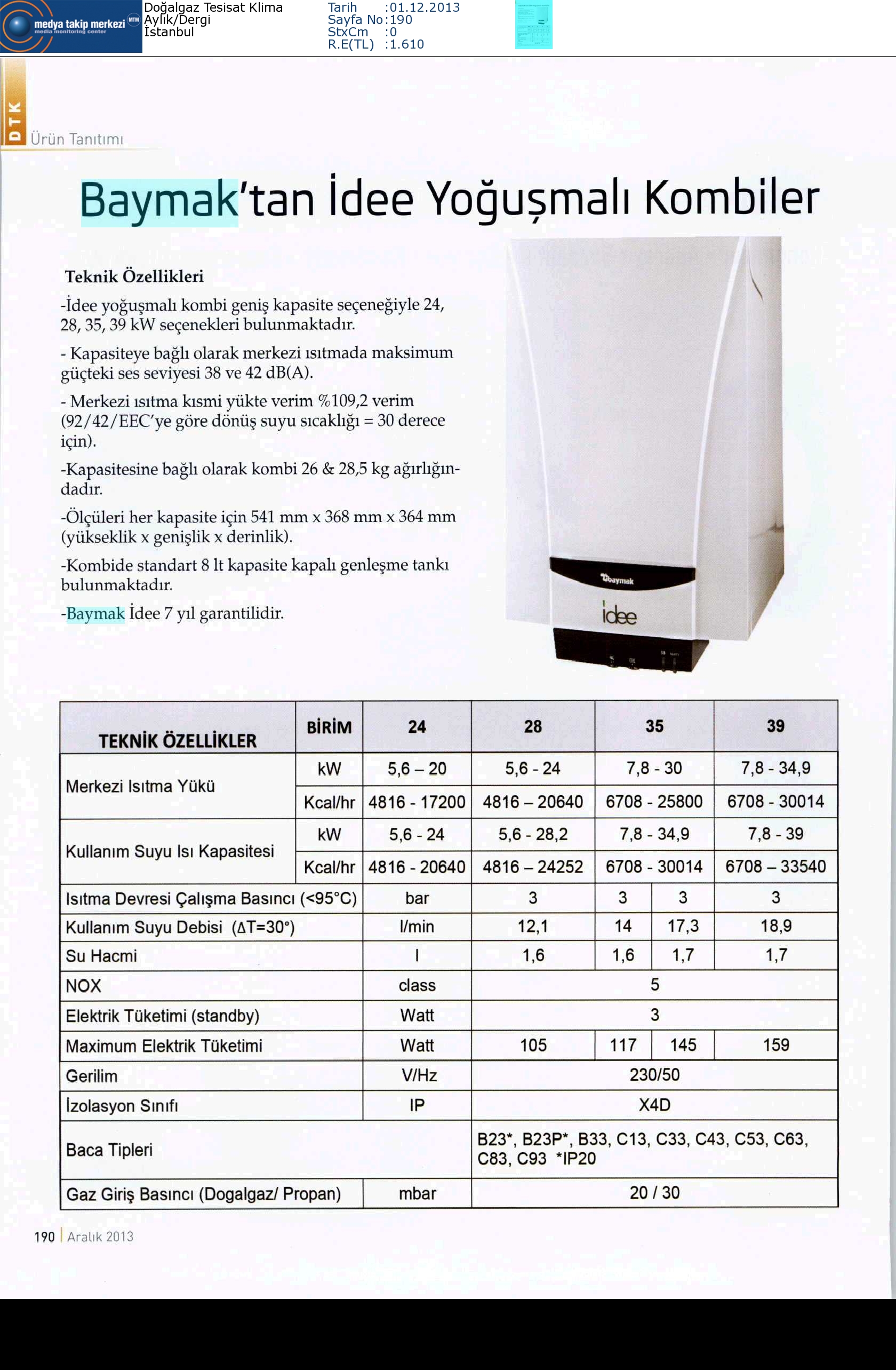 BAYMAK'TAN İDEE YOĞUŞMALI KOMBİLER 01.12.2013 Doğalgaz Tesisat Klima