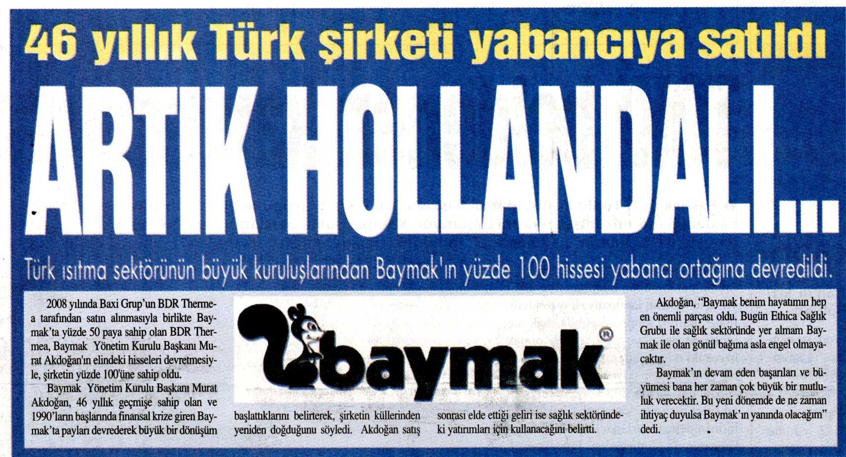 YÜZDE 50 ORTAKTI BAYMAK'IN TAMAMI HOLLANDALI DEVİN 28.03.2013 Türkiye Gazetesi