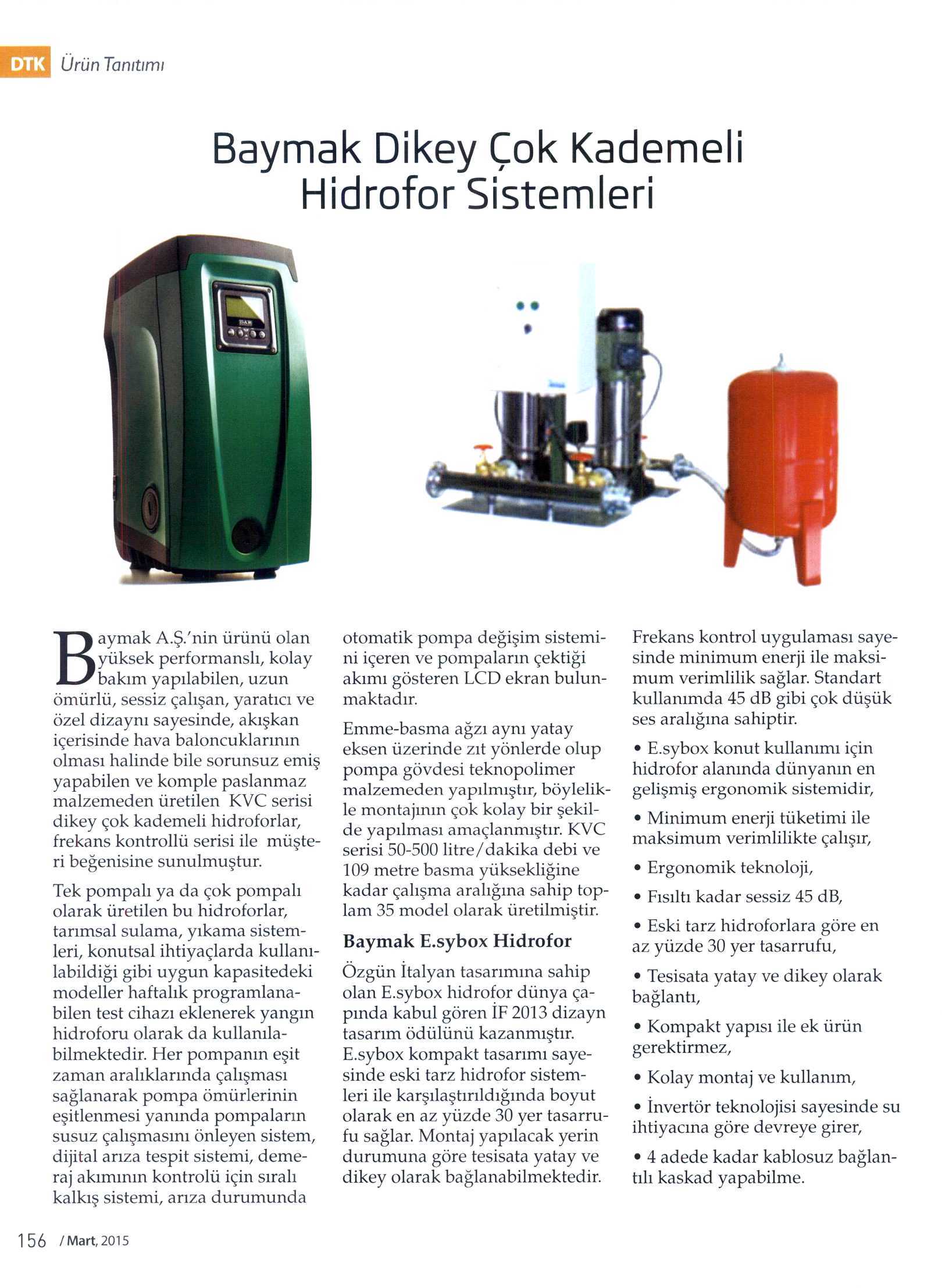 BAYMAK ÇOK KADEMELİ HİDROFOR SİSTEMLERİ 01.03.2015 DTK
