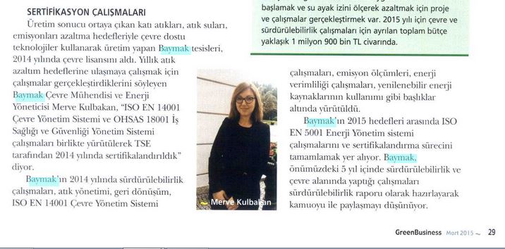 SÜRDÜRÜLEBİLİRLİK SERTİFİKASYON ÇALIŞMALARI 01.03.2015 Capital Ek