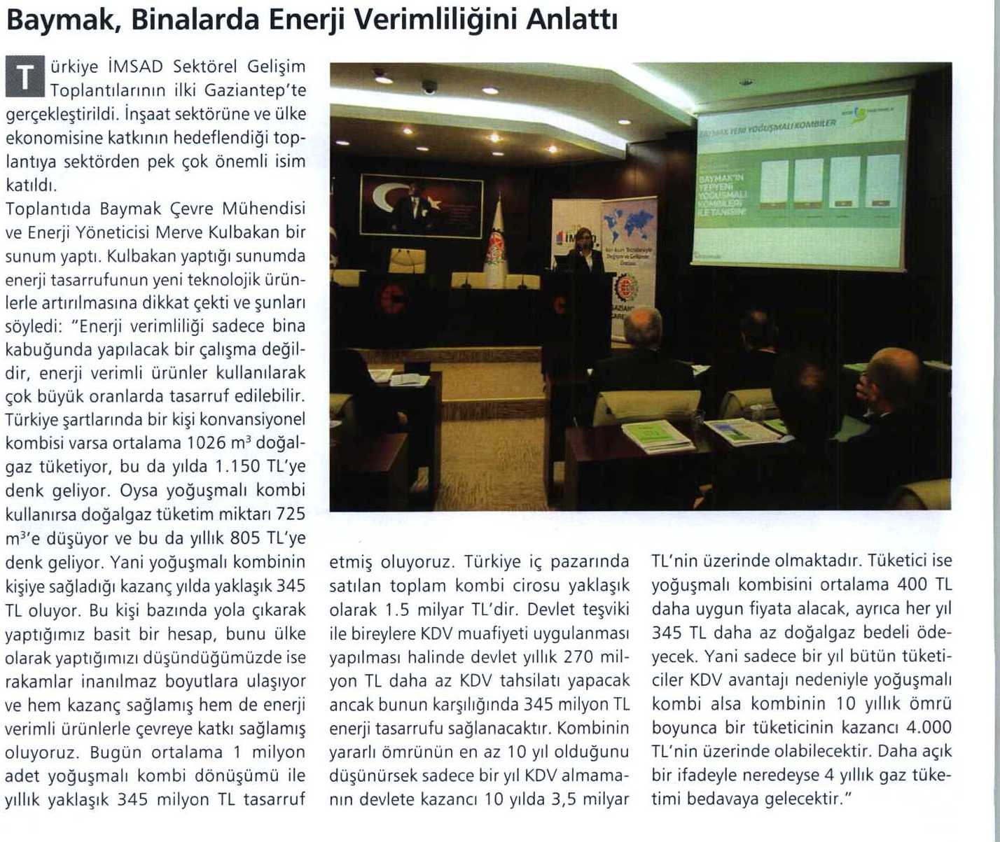 BAYMAK İMSAD GAZİANTEP TOPLANTISINA DAMGASINI VURDU! 01.12.2014 İnşaat Dünyası
